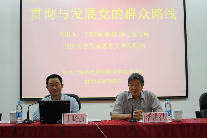 9月27日,我院党的群众路线教育实践活动专题报告会在报告厅举行,同济大学马克思主义学院院长丁晓强教授应邀来校,以《贯彻和发展党的群众路线》为题作辅导报告。院长陈成澍、党委书记潘洪祺、及全院党员出席会议。党委书记潘洪祺主持报告会。