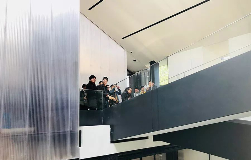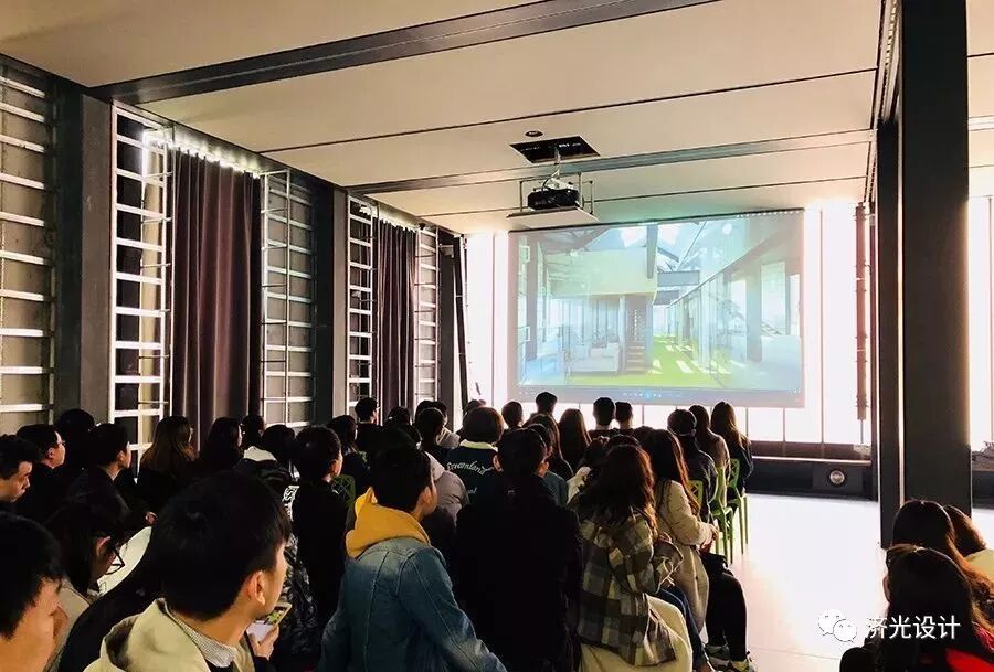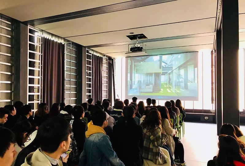 16级建筑室内设计专业的同学们坐满了一楼的“考工讲堂”,一起观看了H18施工过程的纪录回顾,对这栋建筑的选材考究及工艺创新有了更深的印象。