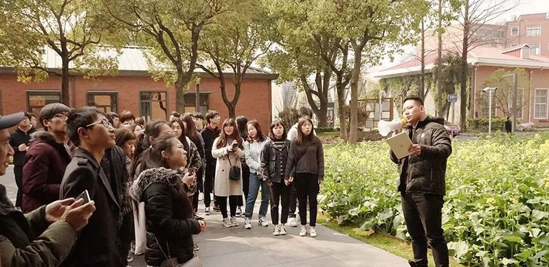 同学们先来到禾邑精造的办公建筑H18的外场驻足观察,聆听公司项目负责人向同学们讲解这栋建筑的设计理念以及在选材上的别具匠心之处。