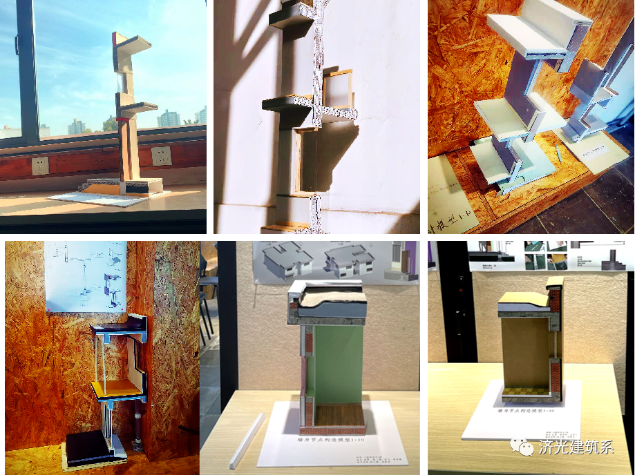 为推进建筑系课程群建设,本次实训首次将二年级《独立式小住宅设计》、《建筑材料构与构造》两门专业核心课程的实训内容进行整合,结合小住宅项目进行建筑构造实训——墙身大样构造设计专项实训。实训要求学生基于完成的小住宅建筑方案设计基础之上,绘制出建筑的墙身构造大样,并完成计算机建模和1:10的实体模型制作。