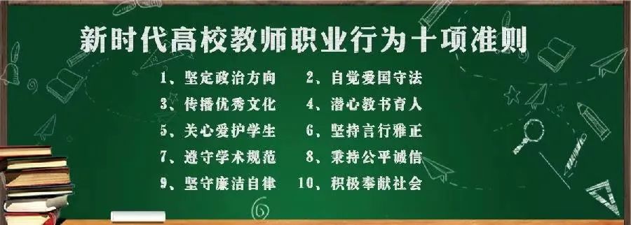 其后,宋雯珺老师带领大家共同学习了《新时代高校教师职业行为十项准则》。老师们结合自身的工作实际,展开了热烈讨论,大家在思想上取得了共识。十年树木,百年树人,教育是一项持续性、长期性的工作,需要教师有直面挫折的勇气和迎接成功的从容,关心关爱每一名学生,真诚相待、热情鼓励、耐心启迪、用心帮助,用良好的德行和温情让学生感受到浓浓的师爱,让每一名学生在愉快的情感体验中学会学习、学会做人、学会拼搏、学会奉献、学会取舍、学会感恩,以良好的师德引导学生的成长与进步。