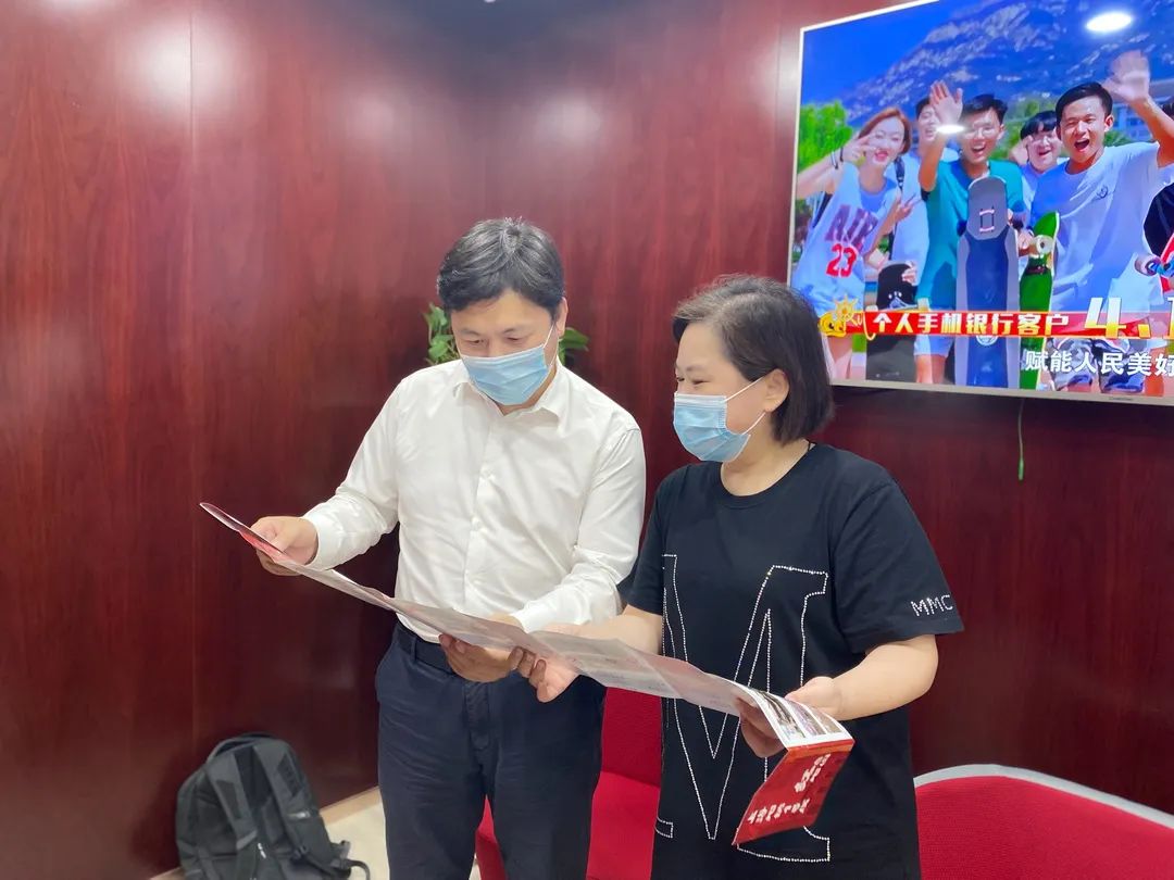 支行行长柯老师与党支部书记王老师向来到银行的市民们赠送地图,并介绍了地图的意义、使用方法,讲述了地图背后的故事。