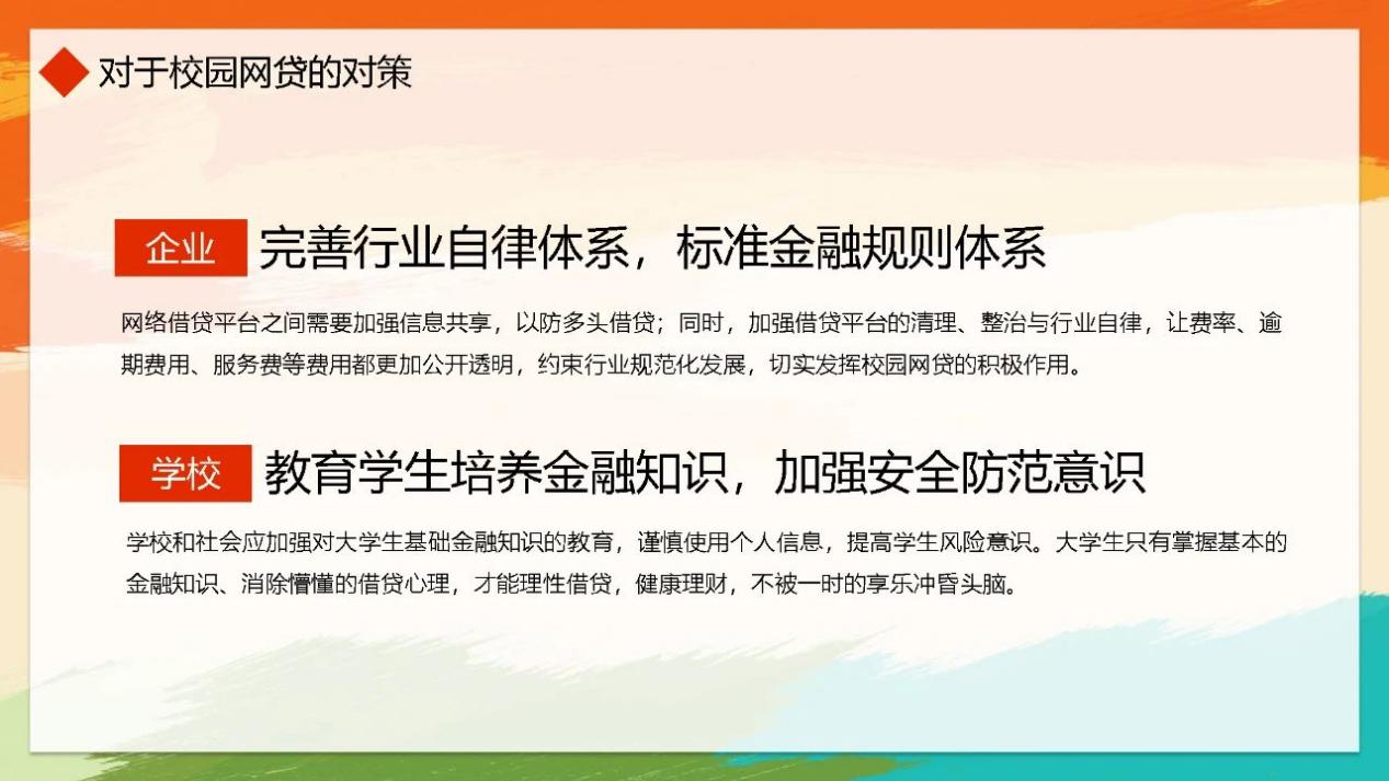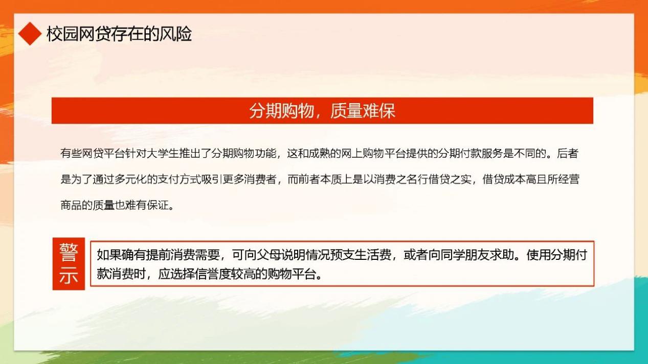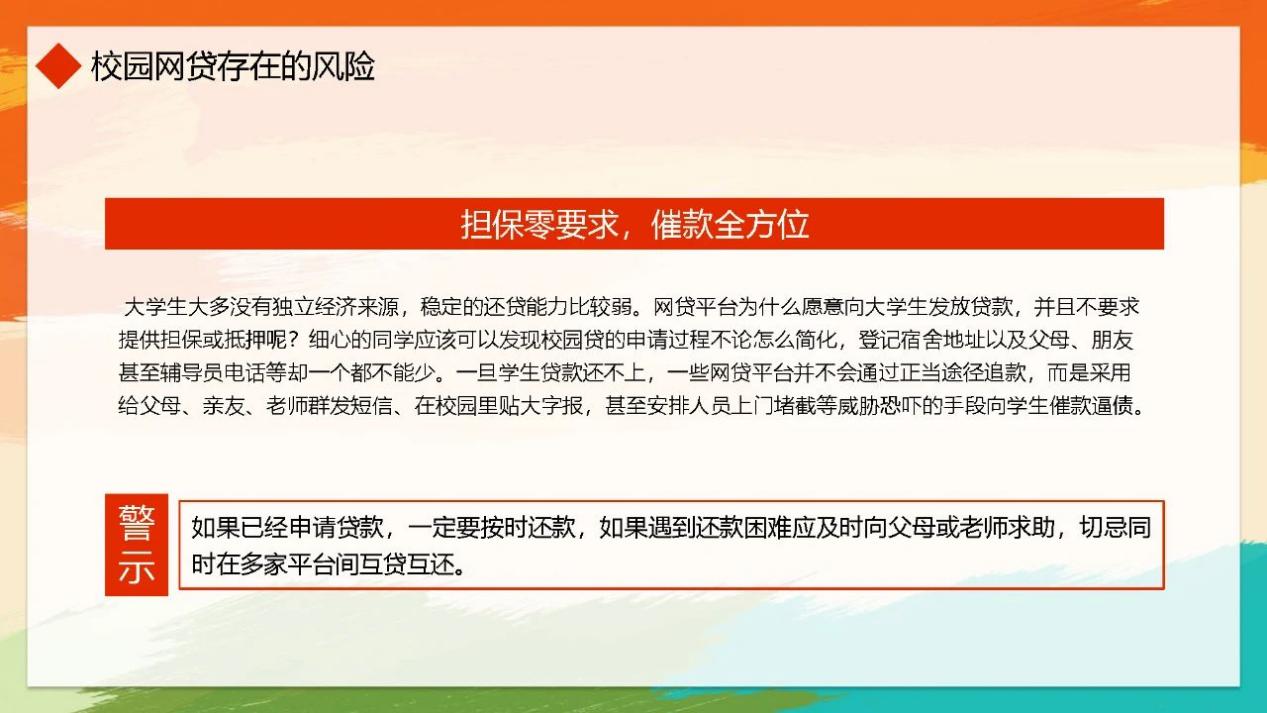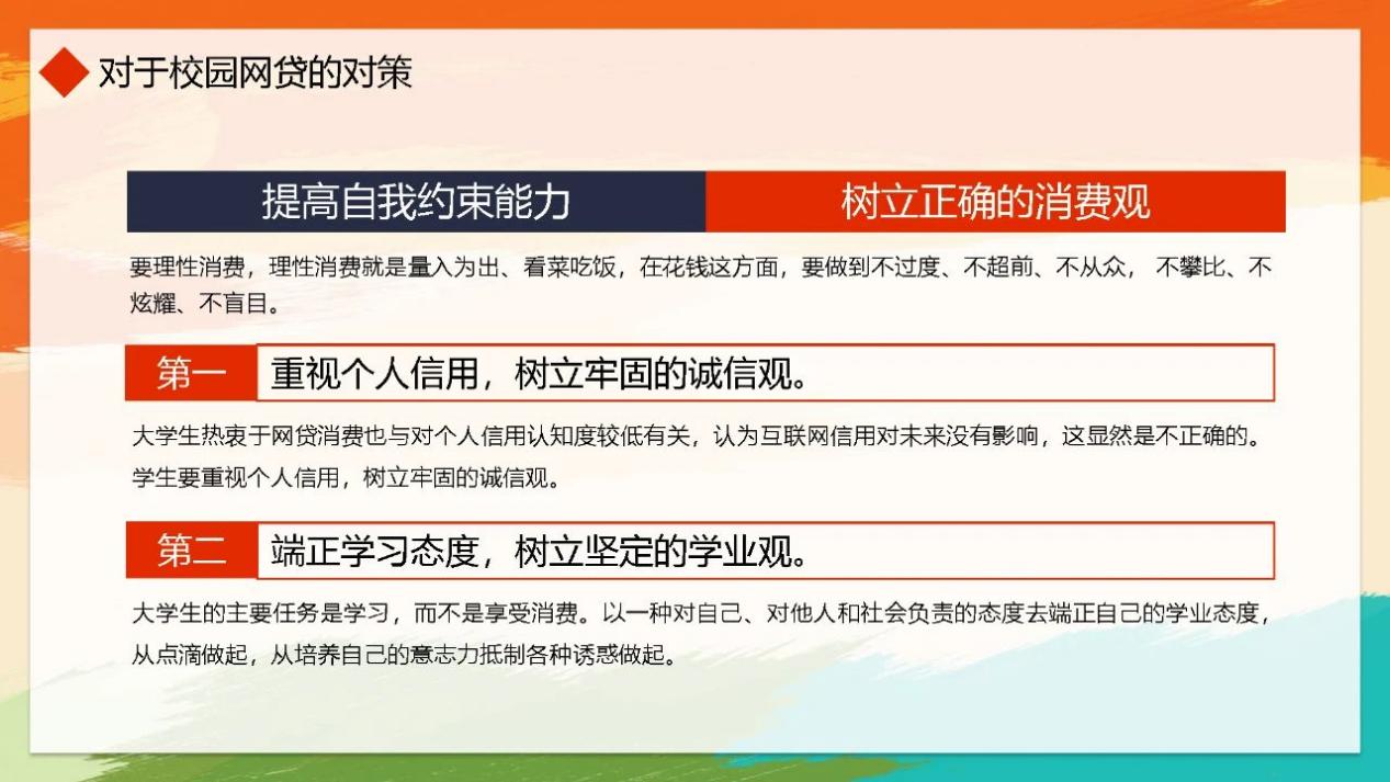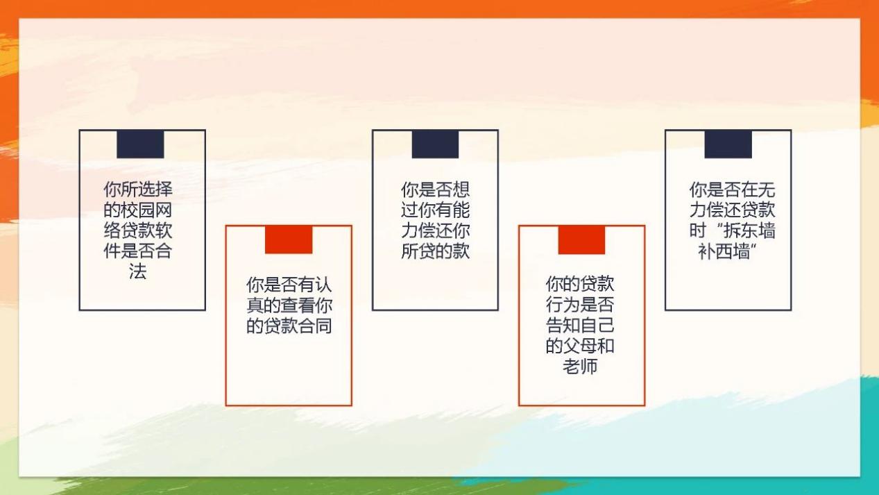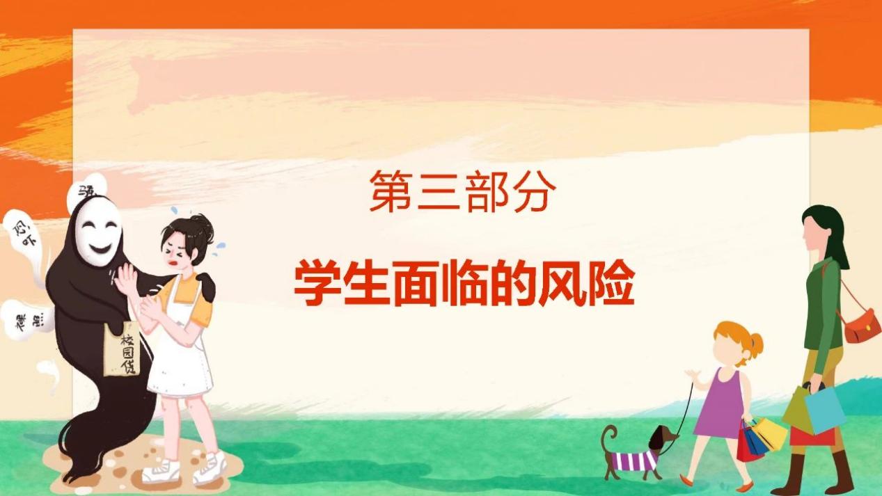 请大家谨记,为了自己的信息安全,严谨借出银行卡。银行卡不要与身份证放在一起,防止他人冒充挂失。个人信用制度非常重要。若有不良信用记录则会影响到个人出行、就业和家庭等。在校园中一定不要接触校园贷,利滚利滚雪球式的增长让人措手不及。不要随意盲目借贷,要培养自己的理财与甄别和防范能力。防范电信诈骗做到六不要:不轻信、不汇款、不透露、不扫码、不点击链接、不接听转接电话。