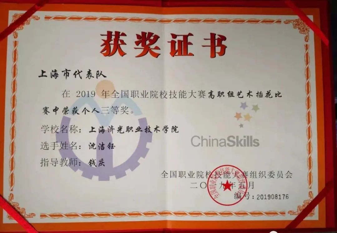 我系风景园林设计专业18级沈洁钰同学获得全国职业院校技能大赛“艺术插花”赛项三等奖