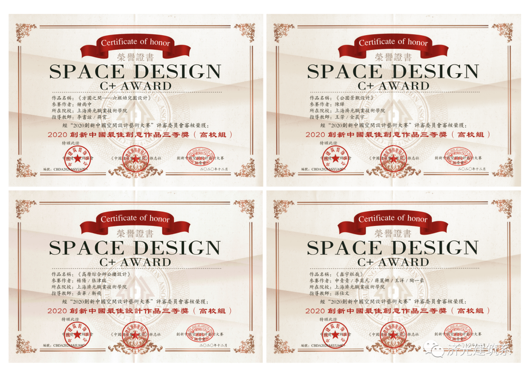 我系组织建筑设计专业、建筑室内设计专业、风景园林专业、数字展示专业的优秀学生作品共计44份,参加了由中国建筑装饰协会支持,中国建筑装饰装修杂志社主办的2020创新中国空间设计艺术大赛,获得了二等奖3组,三等奖4组的佳绩。