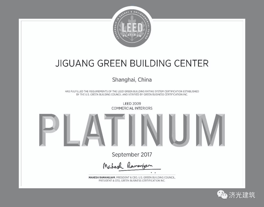由校企共建的济光绿色建筑创新中心于2017年9月获得美国绿色建筑委员会(USGBC)授予的LEED 铂金级认证。
