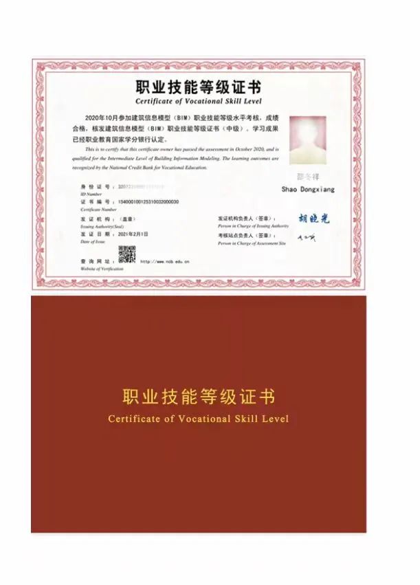 大学英语等级证书、计算机一级证书、教育部城乡规划与建筑设计专业“1+X”BIM建筑信息模型职业技能等级证书(中级)、AUTOCAD(中级)资格证书等。