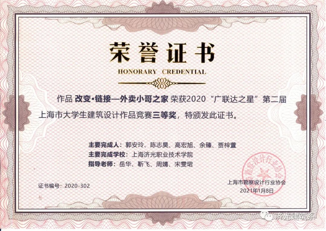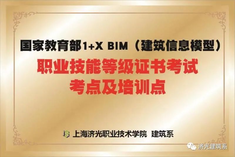 上海济光职业技术学院成为1+X(BIM)第一批试点院校(培训点+考点),建筑设计专业学生参加2019年教育部1+X BIM职业技能等级证书(初级)考试通过率达83%,位居上海市高职试点院校第一名;学生参加2021年教育部城乡规划与建筑设计专业1+X BIM职业等级证书(中级)考试通过率达79%,远超全国平均考试通过率7%。