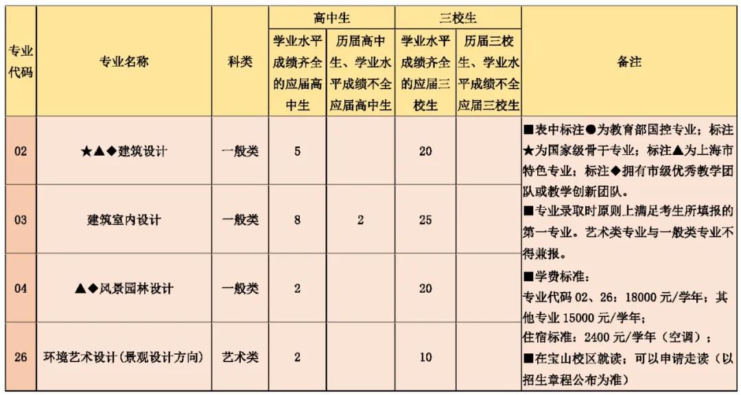 环境艺术设计(景观设计方向)、建筑设计18000元/学年。