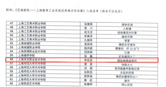 ▲《艺海扬帆——上海教育工会系统优秀美术作品集》入选名单通知