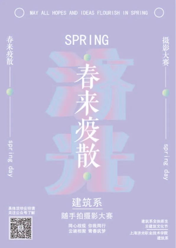 (1)春日美景(风景、建筑等)(2)校园生活(生活场景、学习场景等)(3)抗疫风貌(防疫物品、抗疫场景等)