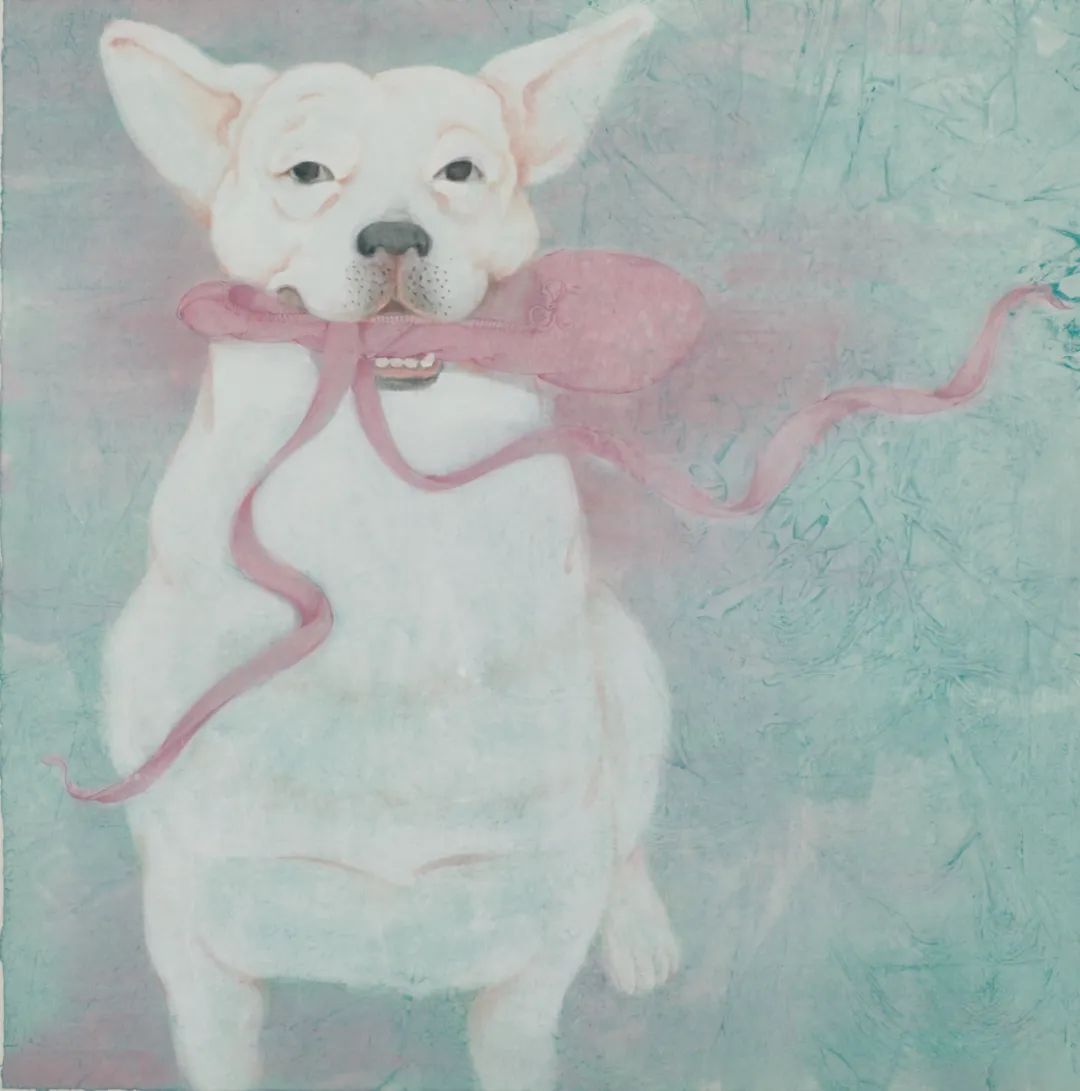 “欣芸感怀过往,那些看似琐碎的生活片段被她披上了梦幻的乐园粉色是欣芸的最爱,也许粉色中孕育着多种变化和可能,温婉轻盈。她的画抒情浪漫,看似弥漫着童真的呓语,实则表达了对现实生活的热情和达观,这也吻合她的生活态度,纯真、率性而执着。芭蕾舞鞋、娃娃、狗、钢琴、鸟笼、纱幔等等,这些物件对欣芸都有着特殊的情结,是童年和梦想、现实和生活,看似互不相搭,在她的笔下自然融洽,纯净美好;她用写意和工笔手法自由轻松地转换着童真和现实。欣芸作品的魅力来自于诗意而纯情地表达着个体感受。她表达了对遥远梦想的感怀,通过对那些童真生活物件的梳理,委婉表达了对现实生活的达观态度。正如她自己所言:‘梦吾之所梦,成吾之所想。’”