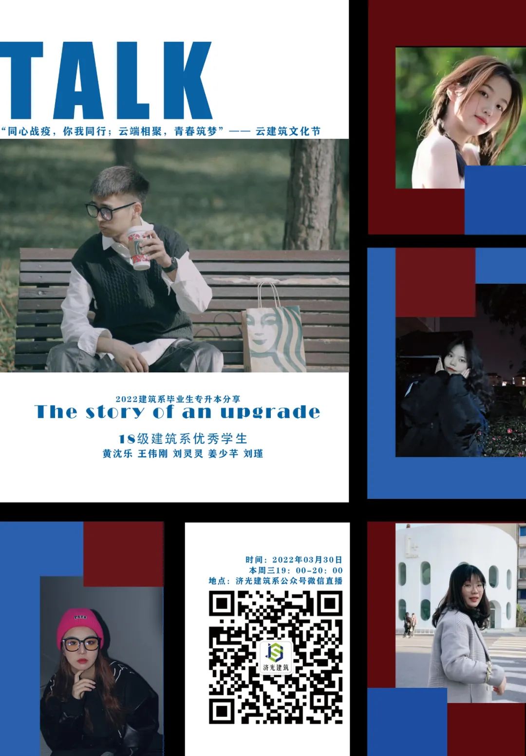 本次分享会邀请到了黄沈乐(上海杉达学院)、王伟刚(上海杉达学院)、刘灵灵(上海贤达学院)、姜少芊(上海杉达学院)、刘瑾(上海建桥学院)五位2021届成功专升本的同学,为19级计划专升本的同学进行经验分享。