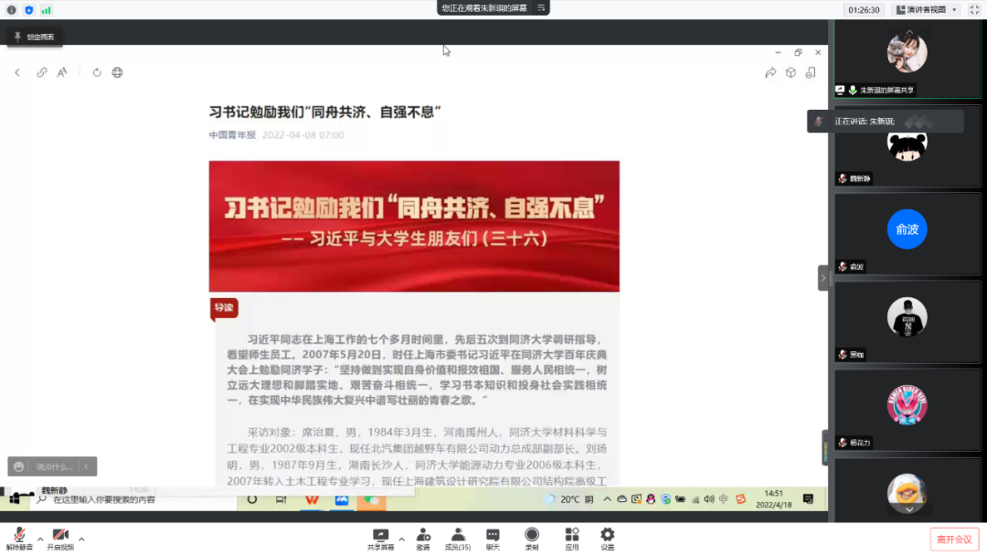 为“坚持做到实现自身价值和报效祖国、服务人民相统一”提高学生道德素养以及思想觉悟,带动更多青年投身于社会实践,我系各班团支部于2022年4月陆续开展了一系列团课学习活动,增强学生对于理想的追求。