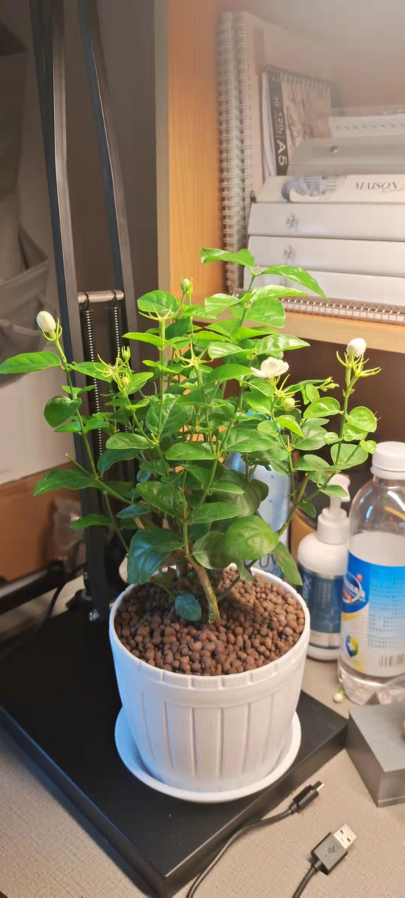 20级建筑室内设计3班的杨奥同学在宿舍养了一盆茉莉花,虽然宿舍的桌子很小,但还是为花腾出了位置,有了花以后,整个生活好像都变得浪漫起来,舍友也很喜欢他的花,每次修剪、换水都会听到她们对花花的称赞。打理花朵需要一点点时间,在那个时间段里,有时沐浴在阳光里,有时在阳台上,远离了手机,整个人安安静静,与花共处,那是难得清净的时光。在宿舍养花以后,时常能感觉到幸福。