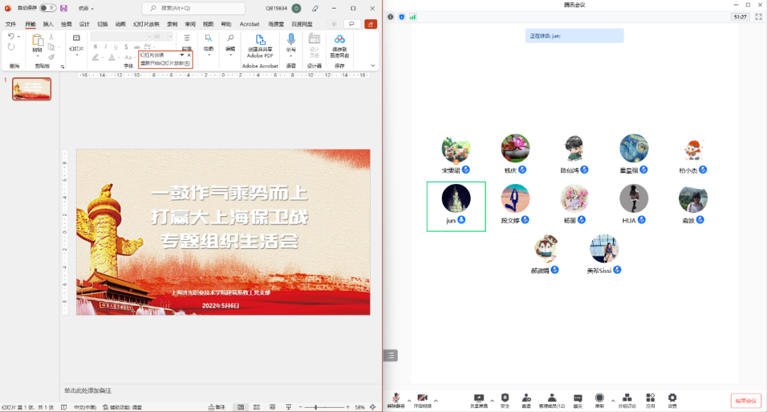2022年5月6日中午,建筑系教工党支部全体党员齐聚线上,召开组织生活会。