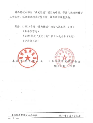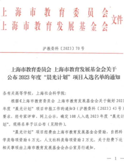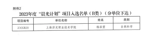 2024年3月7日喜报 我院杨承望老师课题入选上海市“晨光计划”