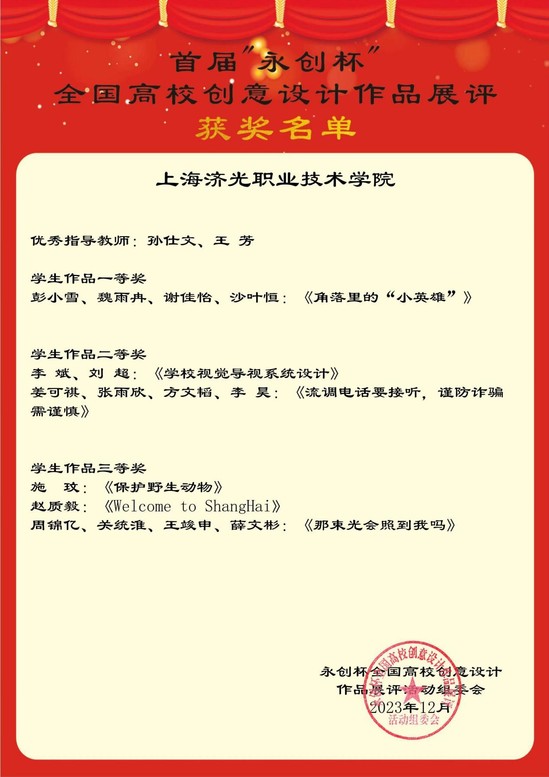 通过参与多个设计竞赛,学生不仅取得了荣誉,也得到更多展示自我、交流学习的机会和平台。未来,学院继续秉承实践育人的原则,为学生提供更多实践锻炼的宝贵机会,努力培养更多具有创新精神和优秀实践能力的技术技能型人才。